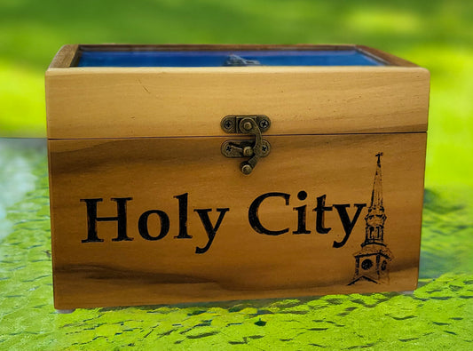 Our boxes are handcrafted, and machine engraved in our Charleston, South Carolina shop using sustainable American woods whenever possible. Stains are sometimes used to enhance the woods’ natural beauty. These boxes are a blend of craftsmanship and the history and beauty of the South Carolina Lowcountry, with their engraved designs, southern phrases, and custom tiles. They are perfect for storing treasured items, photos, candles and more.