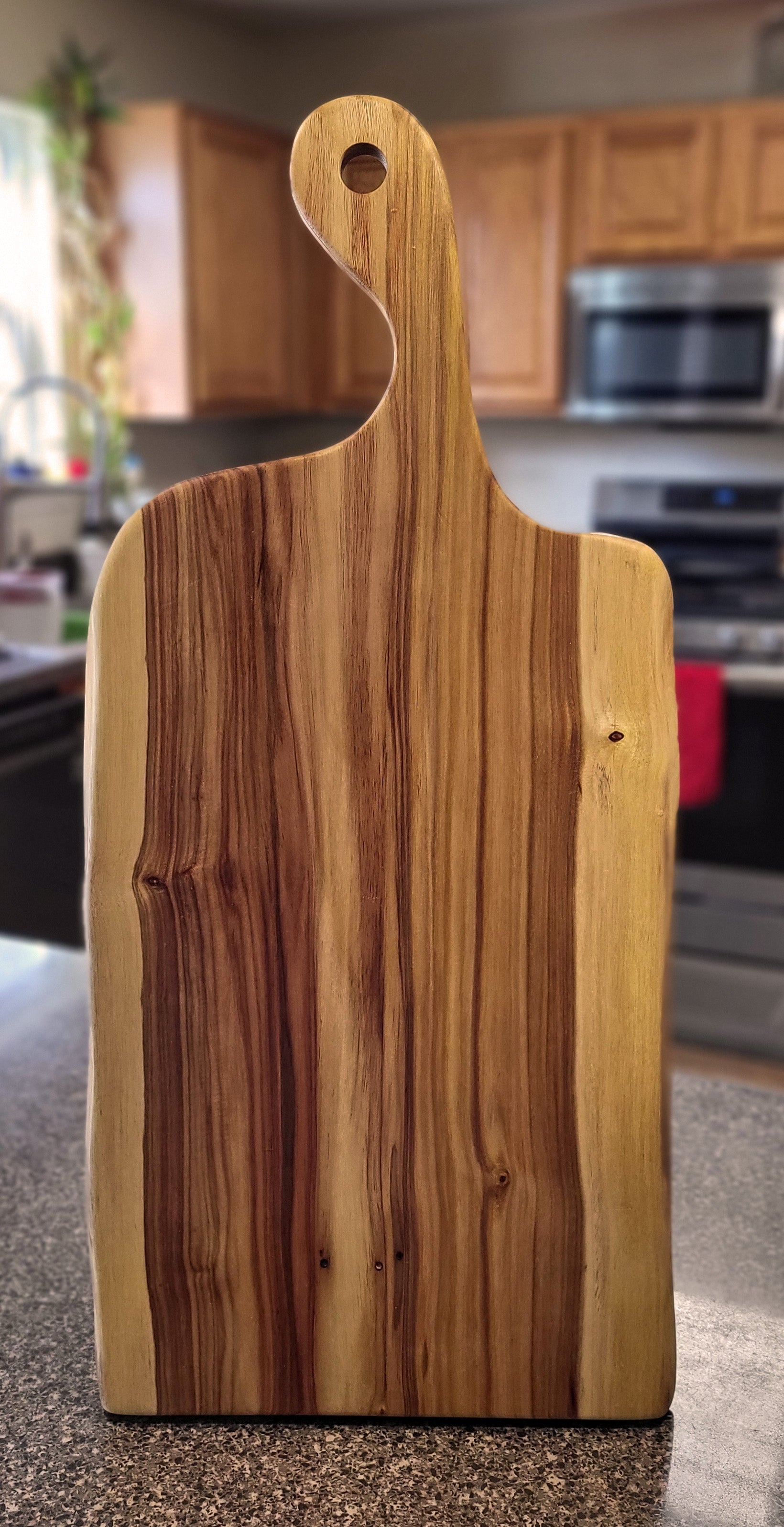 Indulge in the ultimate dining experience with our large Canary Wood Live Edge Charcuterie Board. Crafted from stunning canary wood, this live edge board is both functional and beautiful. Perfect for displaying and serving your favorite charcuterie, it's sure to impress your guests and elevate any meal.