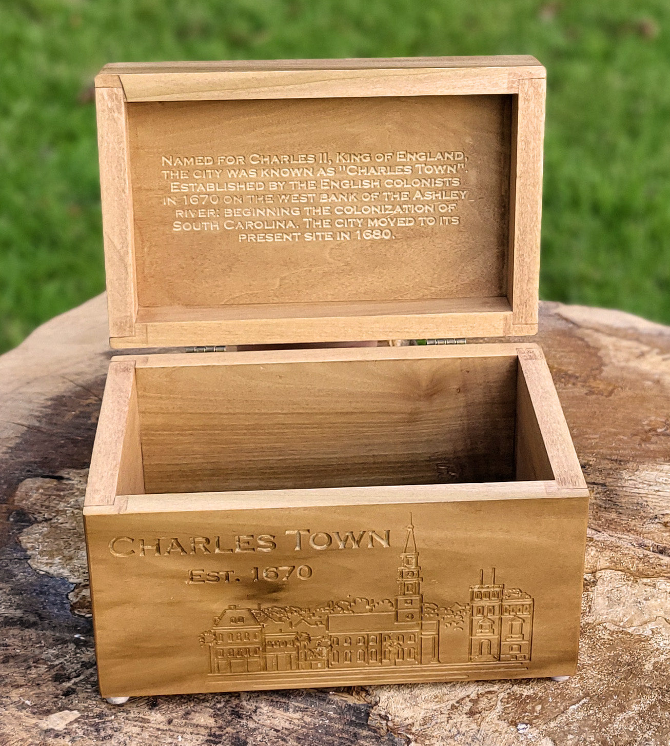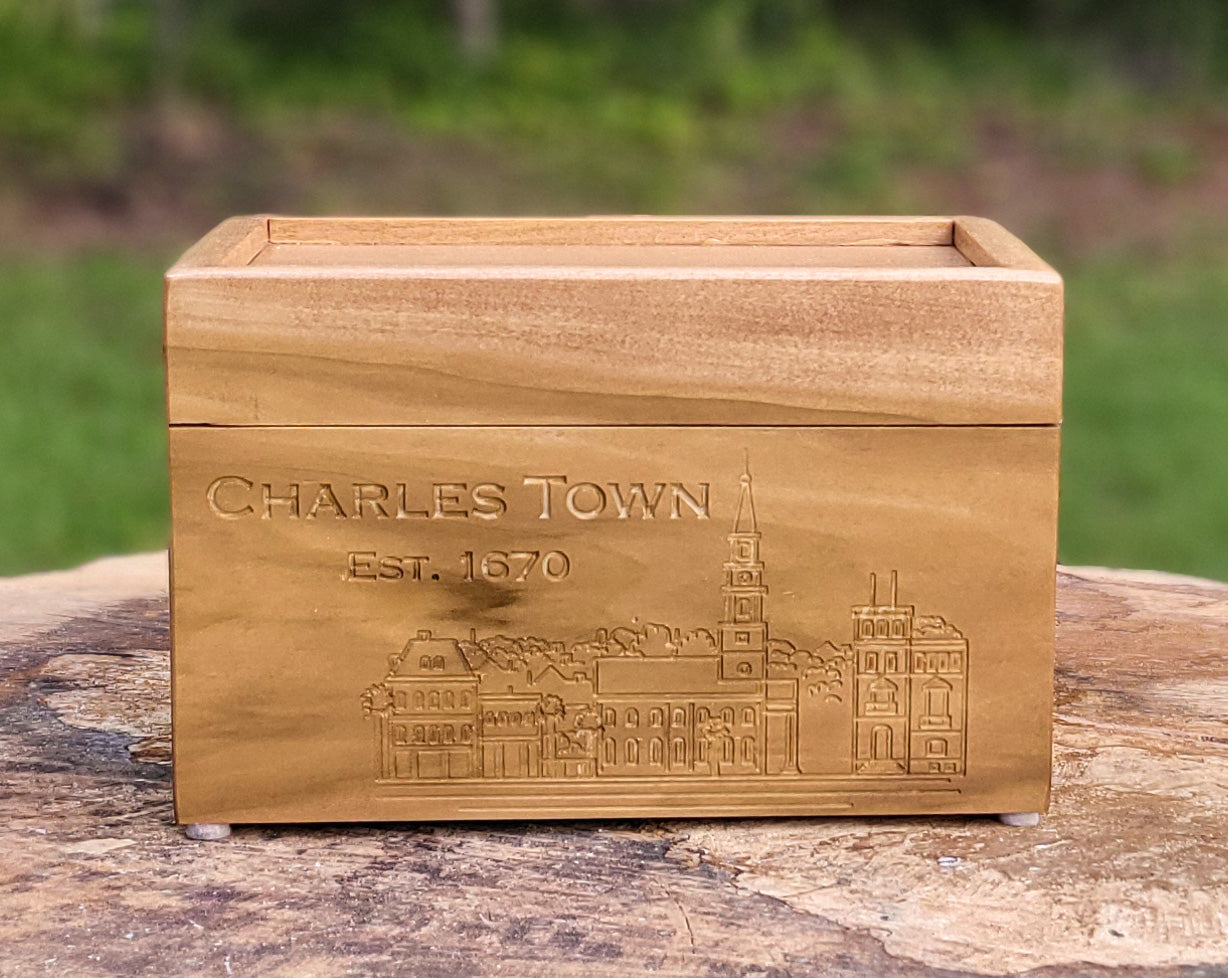 Discover the charm and beauty of Charles Town with this unique keepsake box! Handcrafted and featuring a touch of history, it's the perfect way to add a touch of charm to any room. Perfect for storing your most treasured possessions or as a gift for a loved one.