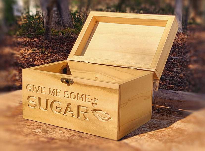 Simply put, it means "Give me a kiss." Used in a loving and playful manner to greet someone. The meaning originated from the fact that sugar, like a kiss, is sweet. These boxes are handcrafted and machine engraved, with brass-colored miniature decorative hinges and latches. They make the perfect gift for that special someone.