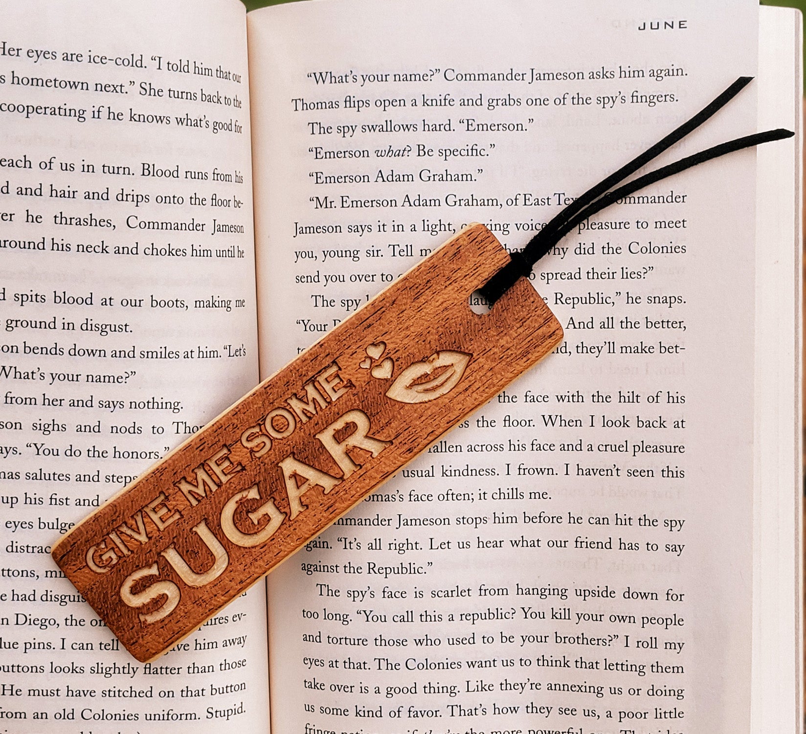 This wooden bookmark is a sweet treat for your reads! Say "please" and "thank you" to your pages with this playful 'Give Me Some Sugar' design. Add a little flavor to your reading experience with this quirky and fun accessory.